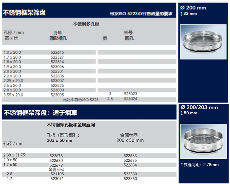 为了满足特殊的客户需求,HAVER&BOECKER提供多种多样的筛盘,比如根据ISO5223的要求专门用于谷物的筛盘,以及专门用于烟草的筛盘等。