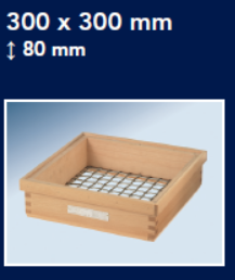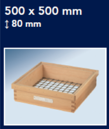 在极特殊情况下,某些特定样品需要木质框架的筛盘,HAVER&BOECKER提供2种规格的筛盘,分别为500*500mm、300*300mm。